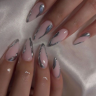 Las uñas con micro perlas, laminados de espejo o efecto “metal fundido” son una oda al futuro con una dosis de misticismo.